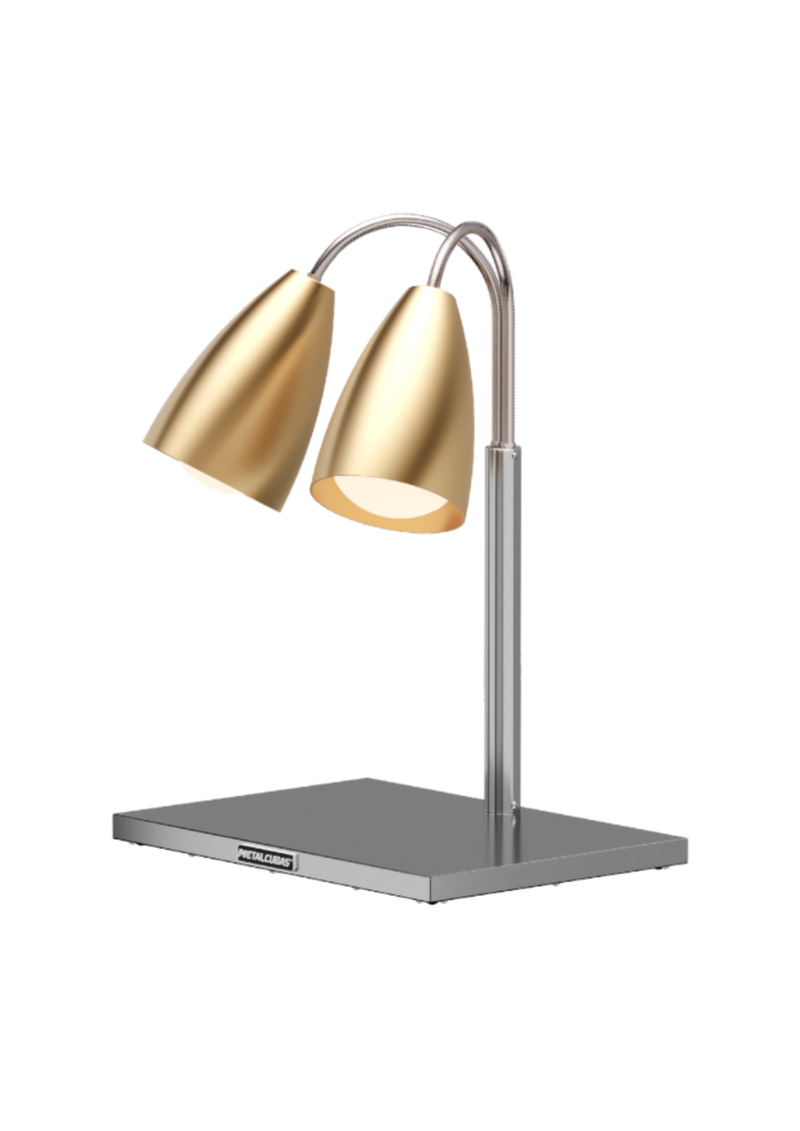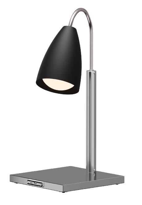 Haste flexível em aço inox, permitindo ajustar a proximidade da lâmpada e concentrar o aquecimento