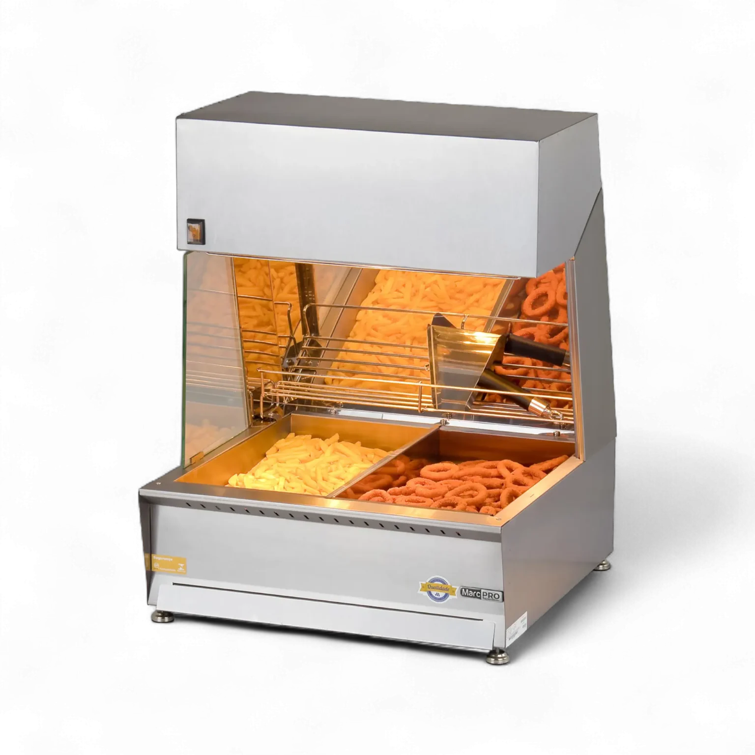 Ideal para operações com alto fluxo, ele mantém batatas fritas, salgados e porções sempre prontos para servir, evitando perda de textura e excesso de óleo.