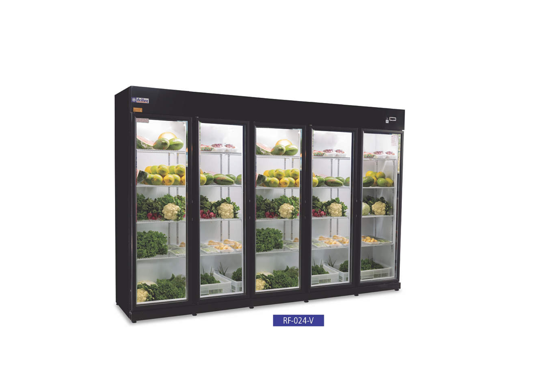 O Expositor RF-024 V é um equipamento refrigerado vertical com 5 portas de vidro, projetado para expor, conservar e destacar frutas, verduras, legumes e hortaliças em pontos de venda como supermercados, hortifrutis, mercearias e lojas de conveniência. Ele alia alta capacidade de armazenamento, eficiência na refrigeração e visibilidade dos produtos, mantendo os alimentos frescos por mais tempo e com apresentação atraente aos clientes.