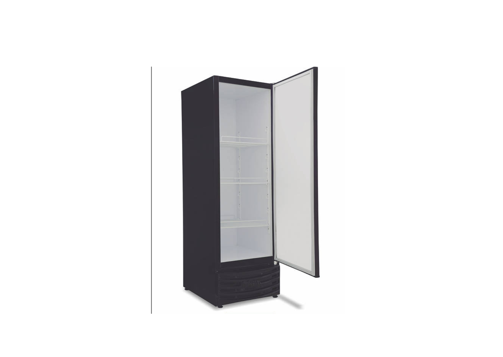 Refrigeração estática com gás ecológico e porta cega.